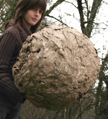 Asian hornets were seen in the UK in 2016. A single specimen was trapped in Somerset and a nest was destroyed near Tetbury in Gloucesestershire. The hornet makes very large nest, usually high in trees and man made structures, sometimes closer to the ground.
