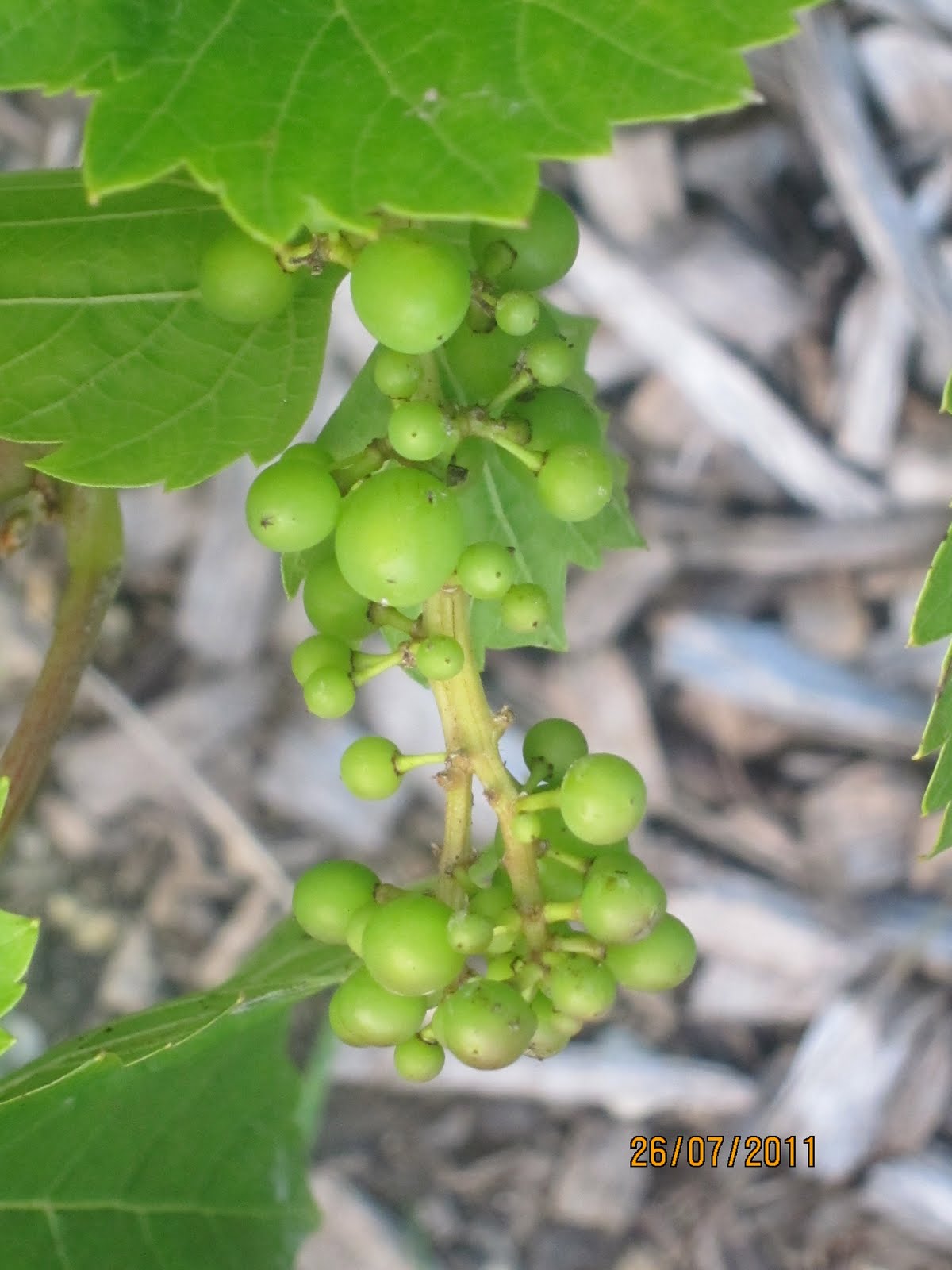 If the weather is bad during flowering it can effect pollination and fruit set. This can result in bunches with small and large grapes, a condition known as