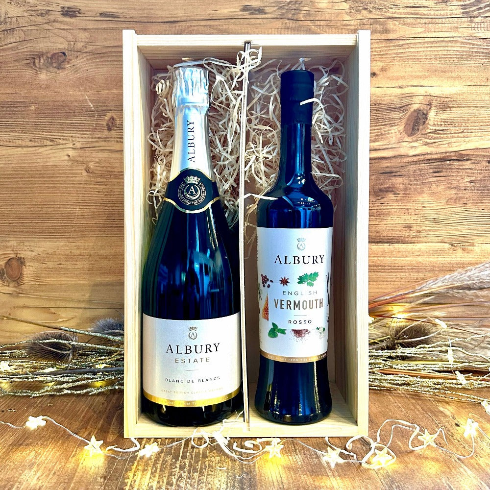 Wine Lover’s Gift Box – two bottles of Albury Estate English sparkling wine, beautifully presented...